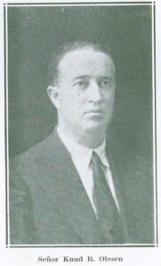 Knud Olesen llegó al país en 1912 y tras trabajar en Coronel Dorrego y Bahía Blanca, en 1922 se radicó en Tres Arroyos dedicándose a la comercialización de productos agropecuarios.