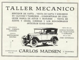 Garage Danés, taller mecánico. Rivadavia 142. Thorvald Hauris, hijo de daneses, nació en Coronel Dorrego el 5 de julio de 1908.
